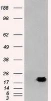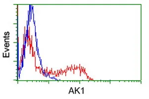HEK293T cells transfected with either RC215130 overexpress plasmid (Red) or empty vector control plasmid (Blue) were immunostained by anti-AK1 antibody (GAM611432), and then analyzed by flow cytometry.